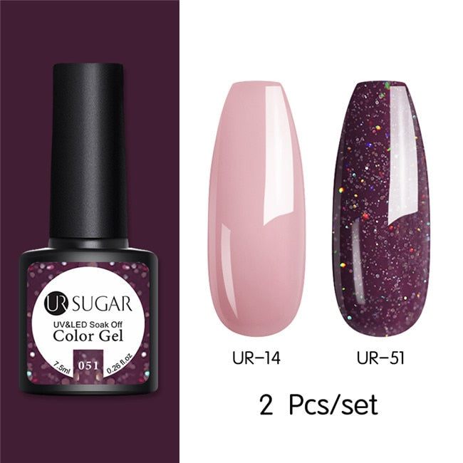 UR SUGAR Glitter UV Gel Nail Polish Set Nude Color Series Led Nail Gel Varnish Semi Permanent Nail Lacquer Sequins Gel 2pcs/set